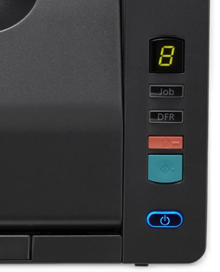 The operating panel for basic operations, such as starting and stopping scans, is located on the front right of the scanner. The panel includes a DFR button to allow smooth recovery from feed stops that occur due to double feed. Up to nine jobs can be registered by connecting to the bundled CaptureOnTouch software.